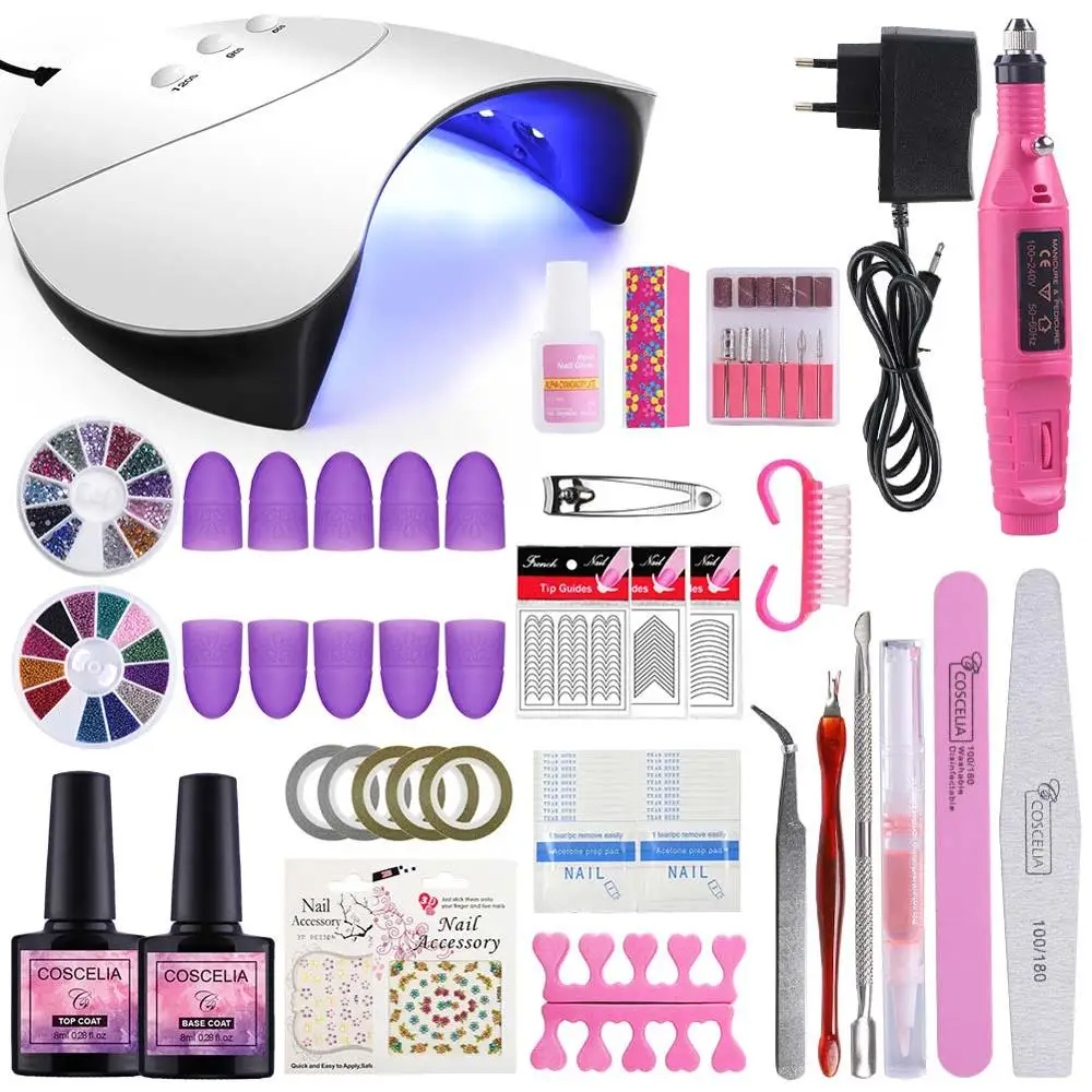 36W UV LED Gel Lamp Set For Nails Manicure Gel Nail Polish Set Nail Art Tools Kit Gel Varnishes Extension Brushes For Manicure