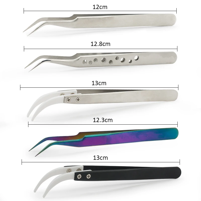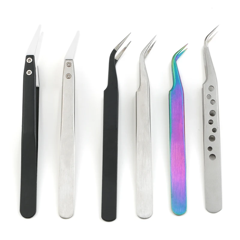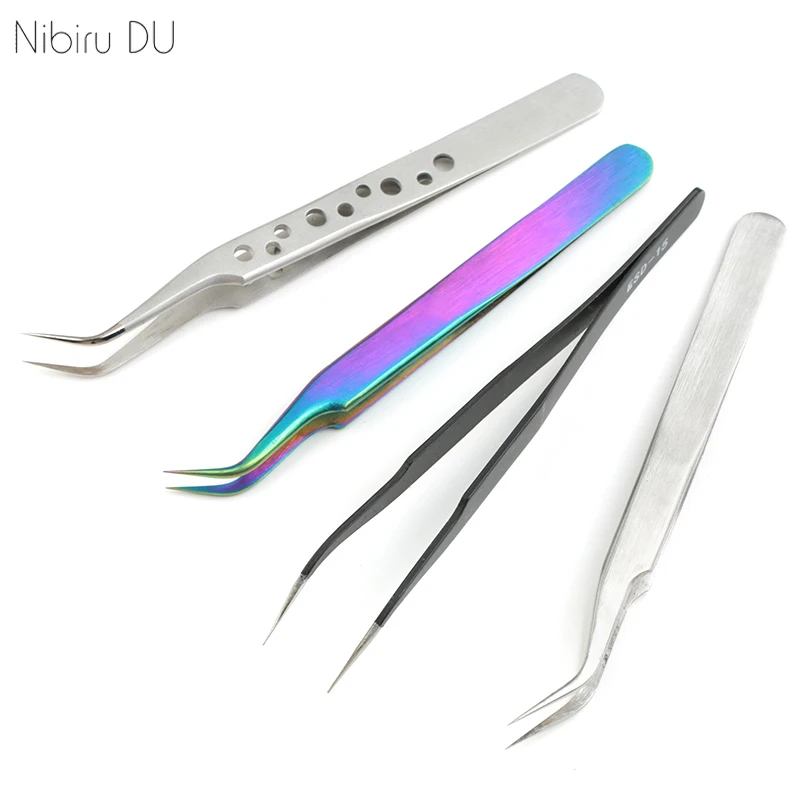 1set Nail Art Tools Stainless Steel Tweezers Antistatic Electroplating Nonmagnetic Tweezers